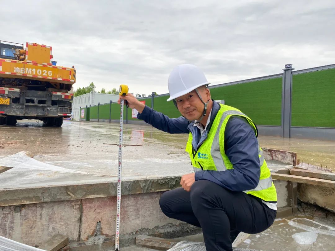 地磅基礎(chǔ)施工中要求素土夯實(shí),地基承載能力大于100Kpa條件下,砼須一次性澆筑完成且完成面誤差不能超過3mm,整體工藝要求極其嚴(yán)格。為了保證基礎(chǔ)設(shè)施符合圖紙及使用要求,他通過精準(zhǔn)測量和復(fù)核,保證了設(shè)施的高精度高質(zhì)量,為后期施工提供了強(qiáng)有力的保障。