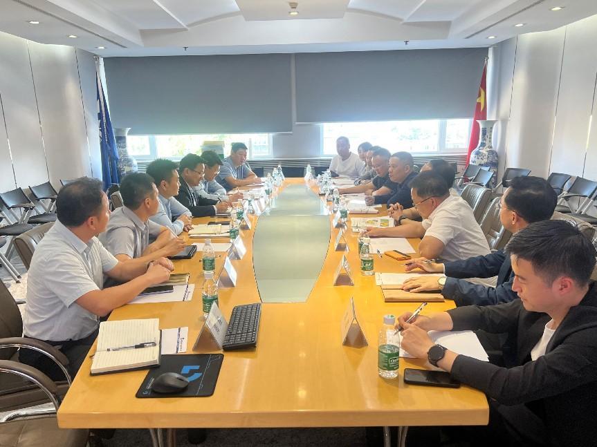 5月7日,長(zhǎng)沙經(jīng)開(kāi)區(qū)管委會(huì)副主任賴?yán)っ饕恍械街袊?guó)建技座談交流。中國(guó)建技黨委副書(shū)記、副總經(jīng)理余湘北,副總經(jīng)理石磊出席會(huì)議。