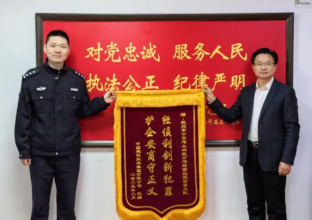 2月27日,中國建技黨委副書記、總經(jīng)理余湘北,黨委副書記、紀(jì)委書記李小陽,法務(wù)楊建旭一行專程赴杭州市上城區(qū)經(jīng)濟(jì)犯罪偵查大隊(duì),向辦案民警代表送錦旗,對(duì)經(jīng)偵大隊(duì)在偵辦中國建技原浙江分公司總經(jīng)理系列重大犯罪案件中展現(xiàn)的專業(yè)能力表示由衷欽佩,對(duì)其高效行動(dòng)致以誠摯謝意。