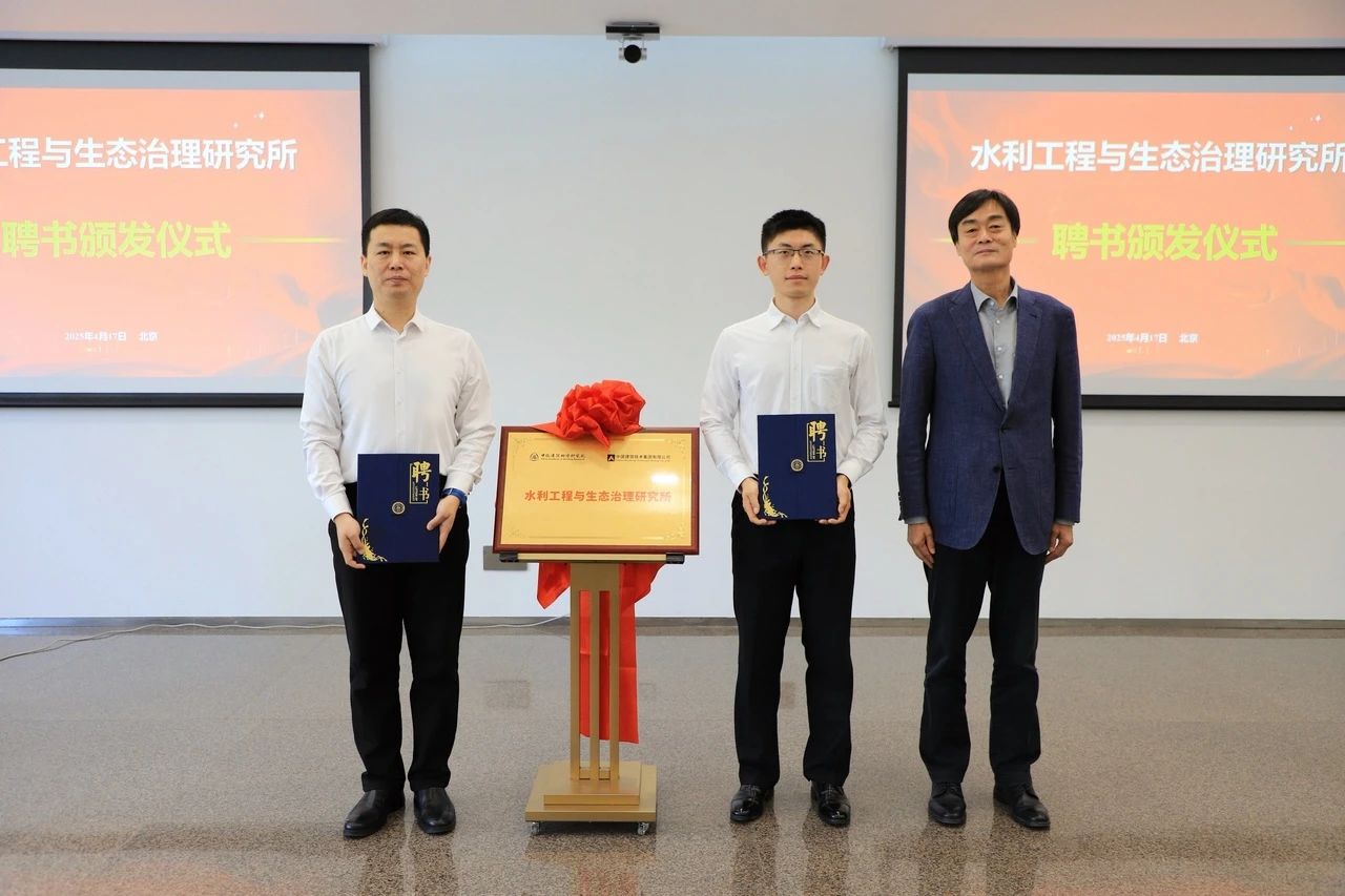 樊金龍、化建新、張沖共同為“水利工程與生態(tài)治理研究所”揭牌。李軍為所長毛宗原、副所長韓凱頒發(fā)聘書。