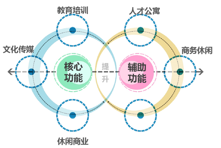 金融商務(wù)產(chǎn)業(yè)協(xié)同發(fā)展——重點發(fā)展現(xiàn)代生產(chǎn)性和生活性服務(wù)業(yè),如總部辦公、商務(wù)商業(yè)、科創(chuàng)文創(chuàng)、會議會展、精品購物(OUTLESS)、特色餐飲等。