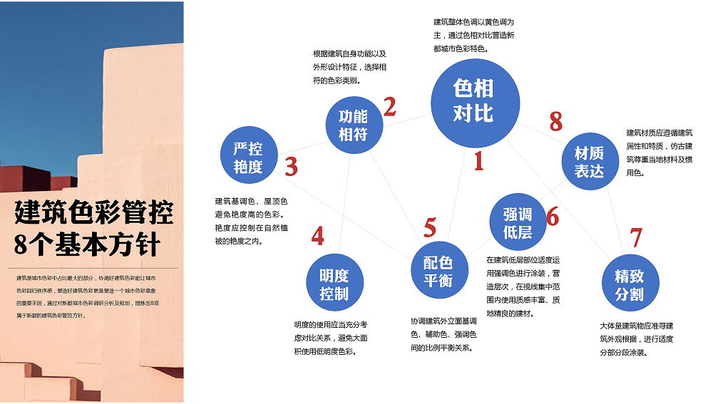 本項目位于四川省成都市新都區(qū),區(qū)域面積496 平方千米,城市人口規(guī)模約90萬人。制定新都區(qū)城市色彩導(dǎo)則,依托色彩導(dǎo)則制定戶外廣告導(dǎo)則、 城市外擺導(dǎo)則、導(dǎo)視系統(tǒng)設(shè)計導(dǎo)則,規(guī)范城市建設(shè)及城市發(fā)展過程中的精細化管控。項目于2020年8月啟動,歷時6個月完成所有工作并取得驗收。